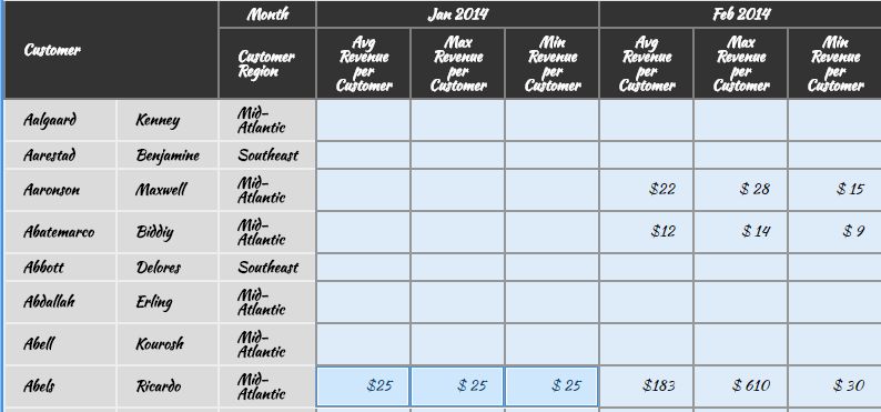 2. Right-click on a part of a visualization (column header, metric, attribute, etc.) in the dashboard, choose Format, and expand the drop-down list of fonts. The kaushan_script font should appear at the bottom of the list.