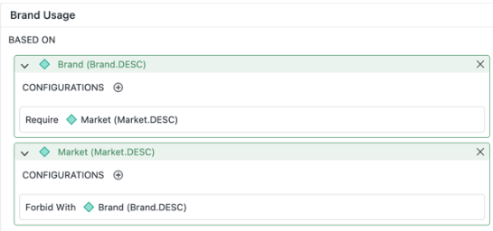 - Starting in Strategy One (January 2026), as shown in the example below, you can set configurations on attributes. if the Brand_DESC column is selected, then Market_DESC must also show in the result. If Market_DESC is selected on its own, without Brand_DESC, then Brand_DESC is not included unless it is explicitly selected.