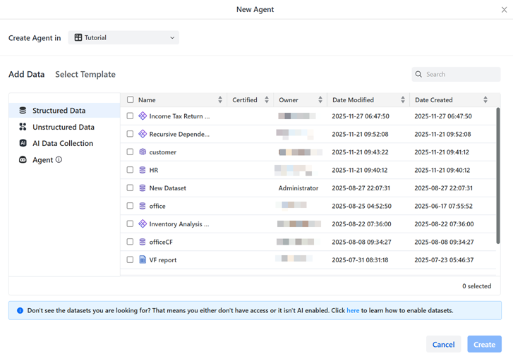 Data Sourceとしてモデルを使用してエージェントを作成する