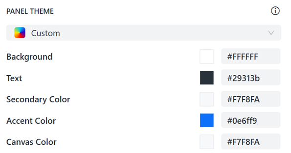 • パネル テーマ: パネル テーマは、エージェント のさまざまな要素の色を定義します。ドロップダウン リストで、定義済みのテーマを選択するか、カスタムを選択して独自のテーマを作成します。