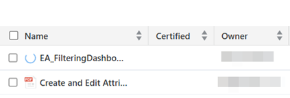 - フォルダーの参照または検索ページからデータセットとレポートを有効にすることもできます。