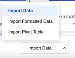 - ビジュアリゼーションを選択してクリックデータをインポートまたは選択データをインポートドロップダウンから選択します。