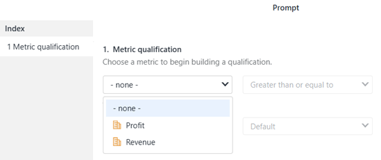 Create a level prompt, which allows the user to select, during report execution, the level of calculation (or dimensionality) for a metric. For steps, see Create a Level Prompt to Define the Calculation Level for a Metric.