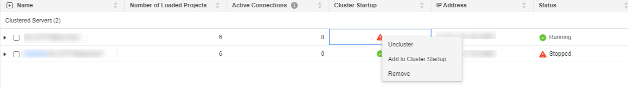 Right-click the red triangle icon in the Cluster Startup column.