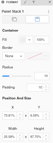 - パネル スタックを選択し、フォーマット パネルを開きます。パネル スタック オプション アイコン