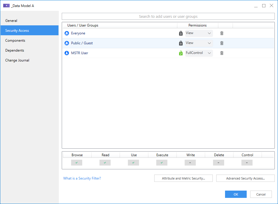 Workstation で直接 Mosaic モデルのセキュリティ アクセスを管理できます。