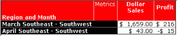 For example, you can calculate the difference between two different regions for a particular month. For the months March and April, the consolidation could contain the following elements: