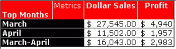 A consolidation can contain elements from the same attribute, such as (March) and (April), both elements of the attribute Month of Year. With reference to the previous example, consolidation elements allow you to expand the consolidation to see the values for each month.