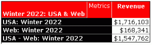 You must report on the difference in revenues between the USA and Web for the winter of 2022. Create the following consolidation elements: