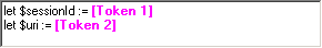 sessionidandurivariables shown below retrieve the authentication credentials from theToken 1andToken 2system prompts.