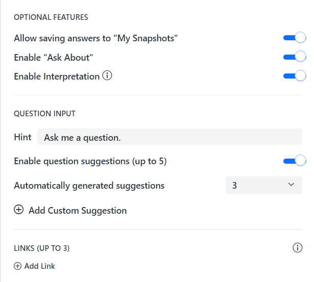 Turn on Enable Interpretation to allow the user more insight to how their question was asked to the LLM. See Leverage AI Interpretation for more information.