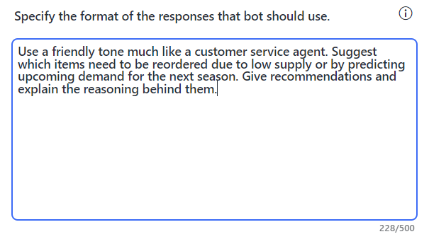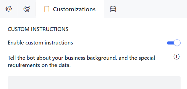 Select the Customizations tab and Enable custom instructions. Here you can make the bot speak your business's language.