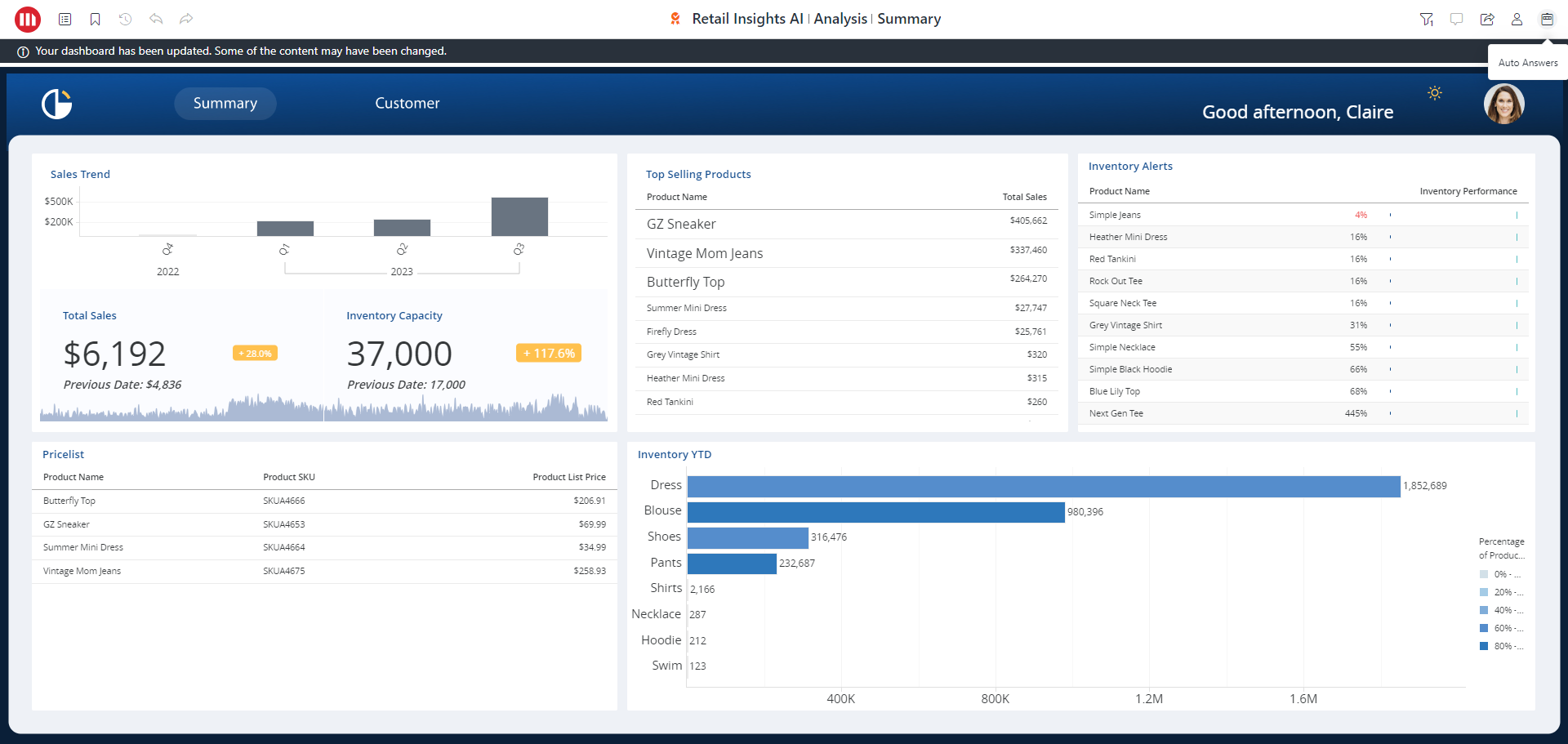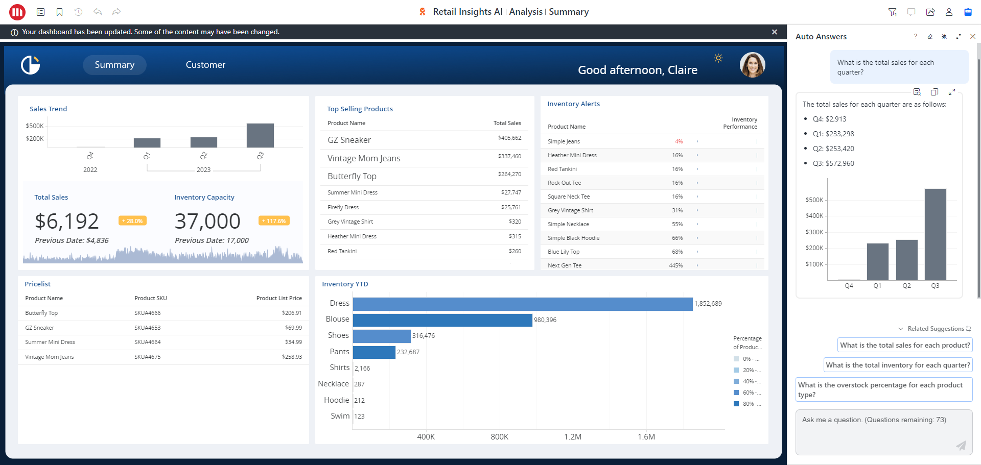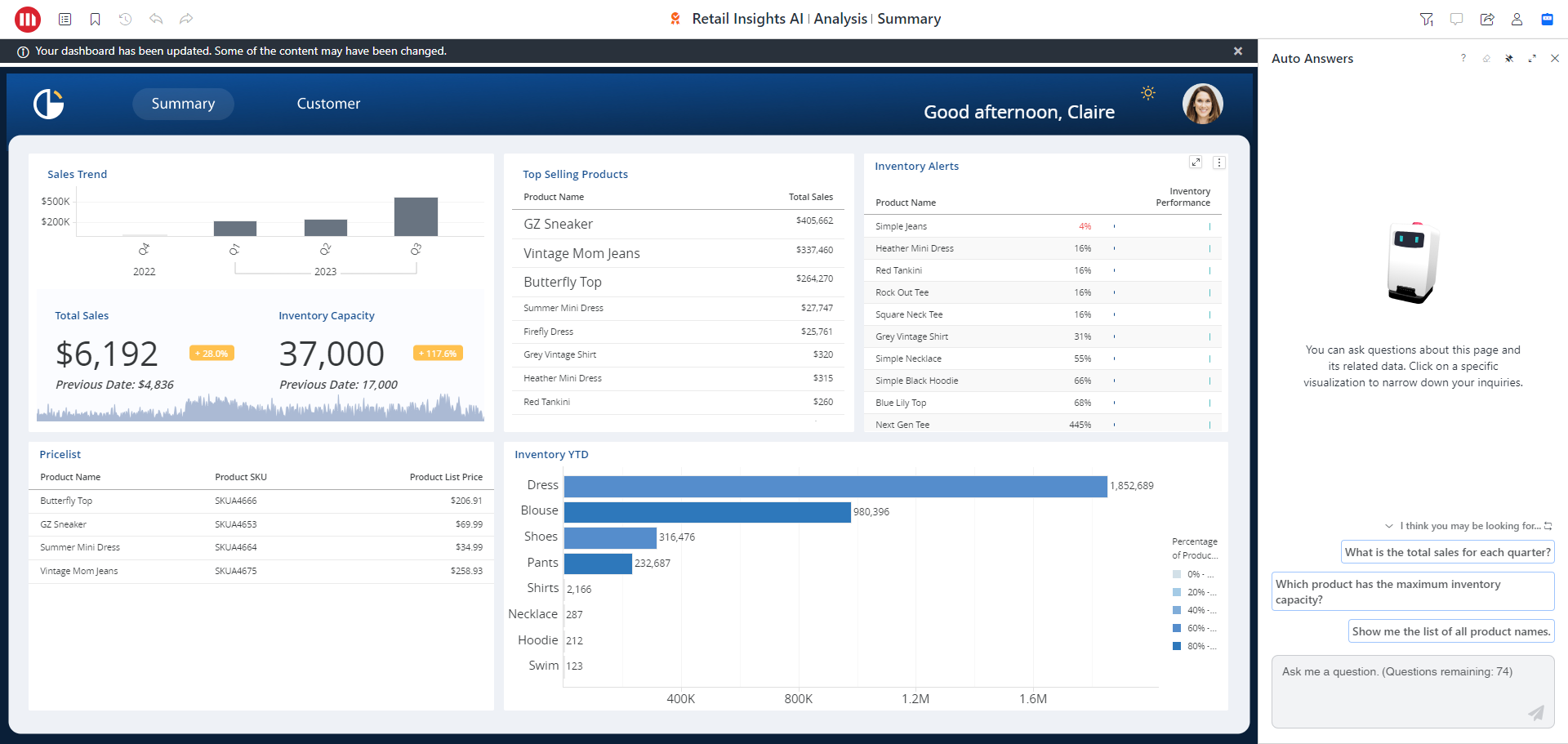 MicroStrategy's contextual data feature allows you to provide more business context to the bot by importing knowledge assets. This makes the Auto Answers smarter by ensuring answers are more accurate and tailored to the specific needs of the business. See Knowledge Assets in Auto Answers for more information.