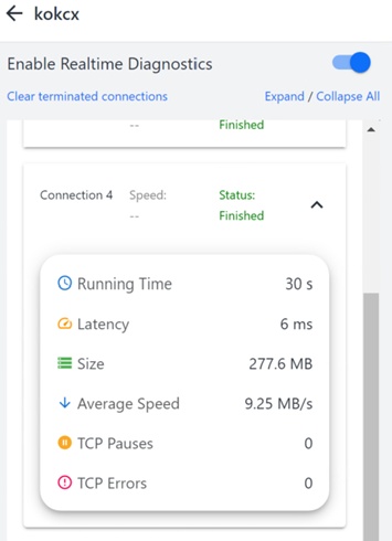 Enable network diagnostics for performance troubleshooting. The Strategy Gateway Agent client enables users to enable Realtime Diagnostics, which monitors network speed during the data fetch process.
