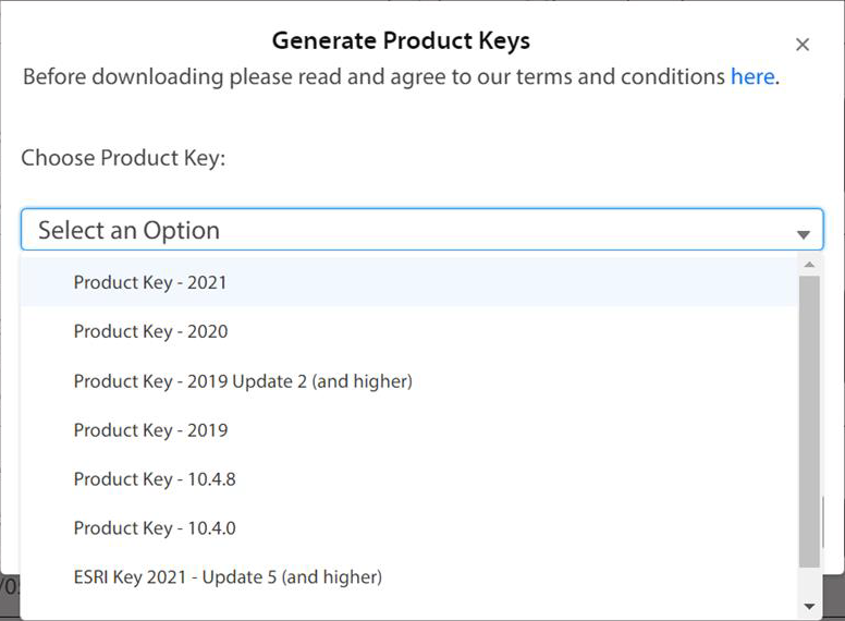 クリックキーを生成する該当するものを選択してくださいESRI キー。