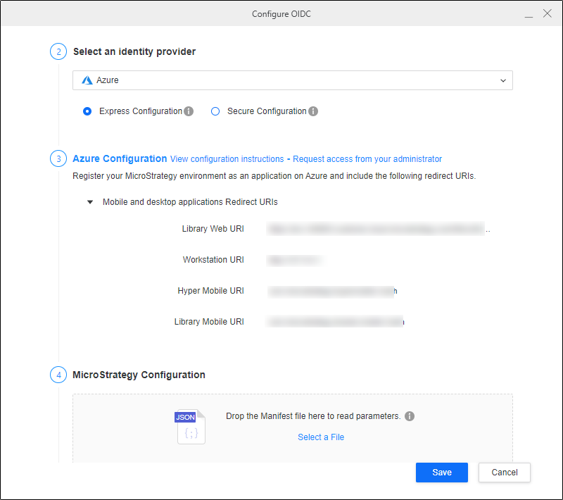 In Strategy Workstation, upload the manifest file in Strategy Configuration.