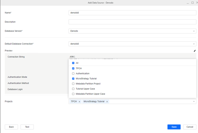 Search and choose Denodo from the data source list.
