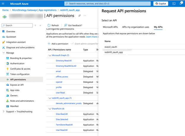 Configure a Microsoft Entra ID application for Denodo OAuth to add the additional permission for Denodo.