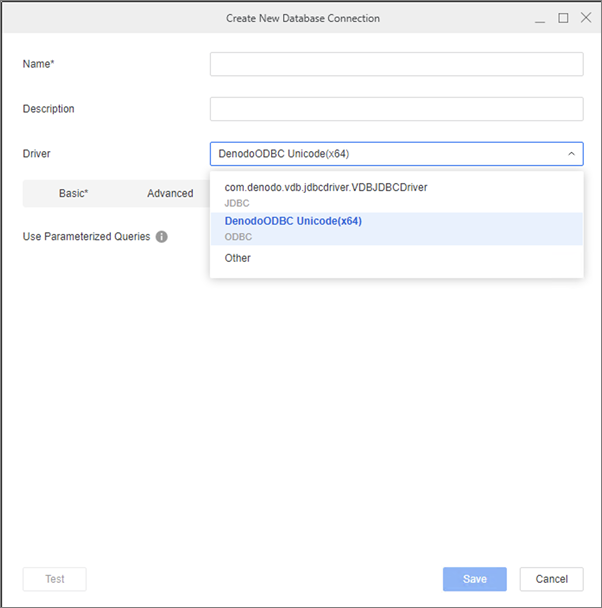 In the Driver drop-down list, choose the Denodo ODBC driver.