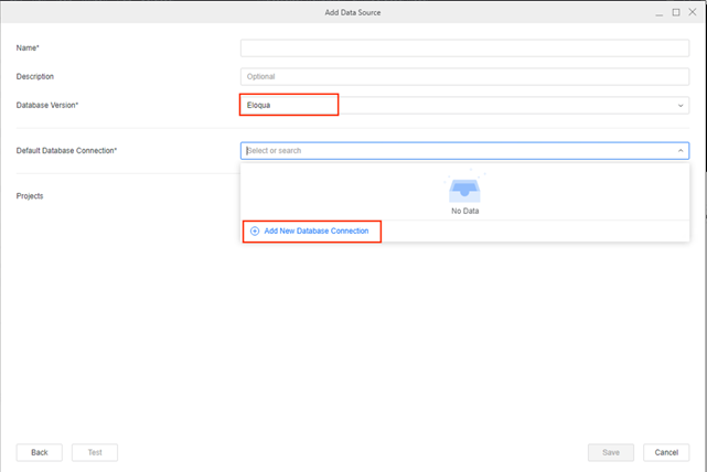 - In Database Version, choose Eloqua.