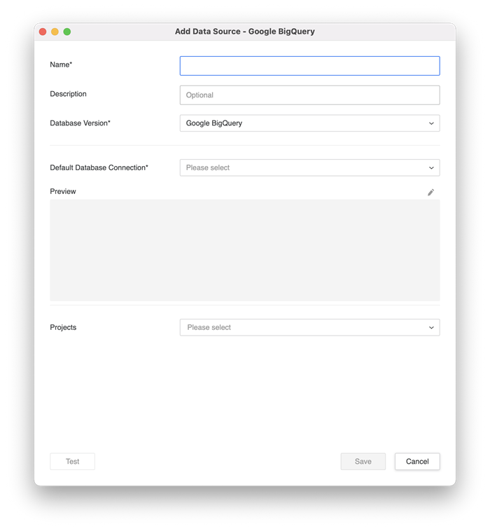 In the grid, select the Data Source and Database Connection for the second group that you created in this step. Database Login is not used by Google BigQuery, Therefore, you cannot select one.