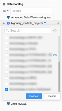 Google BigQuery JDBC connector workflow natively supports different billing and data projects. The user must have permissions to see the data project. See Create a JDBC DSN-less Connection to follow the data import workflow to create the connection.