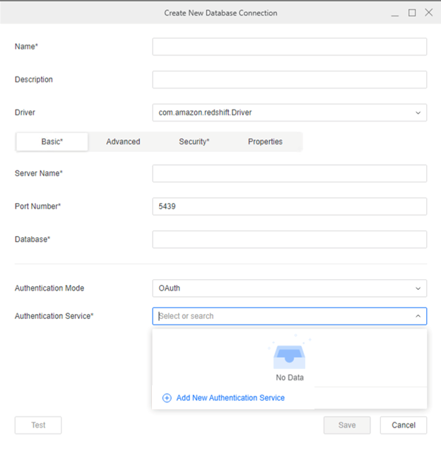 In the Authentication Service drop-down list, choose an authentication service or click Add New Authentication Service.