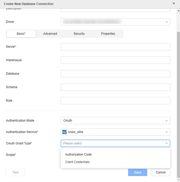 Strategy supports connecting to Snowflake via OAuth authentication using Azure AD, Okta, PingOne, and Generic as IDP.
