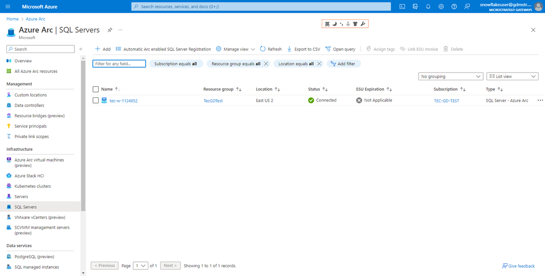 In the left navigation, click SQL Servers and verify the server is available as an Azure Arc-enabled SQL Server instance.