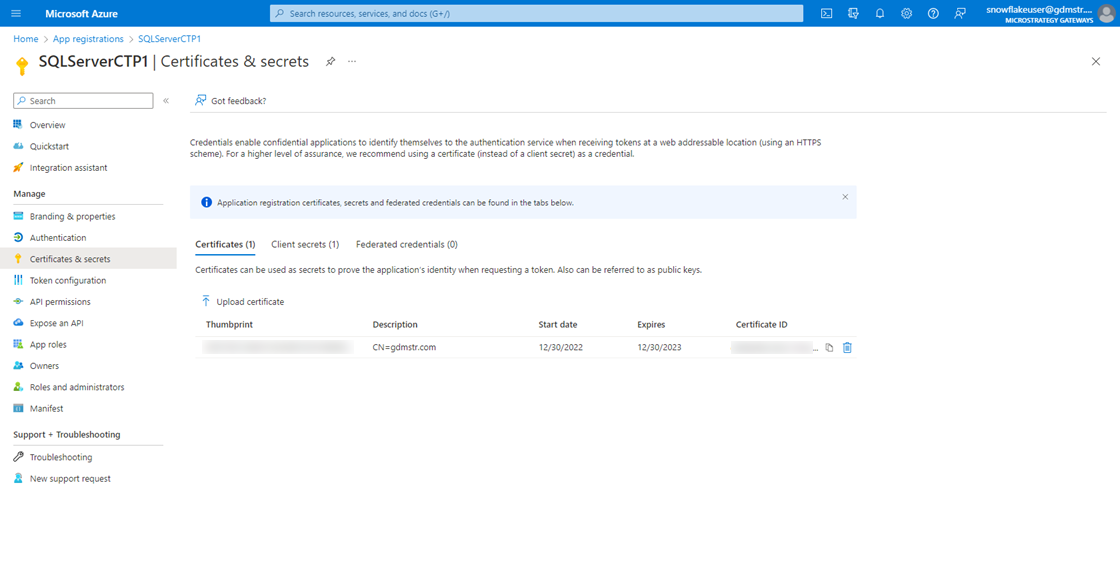Upload the certificate you created in Create Certificate in Azure Key Vault.