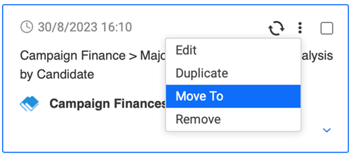 - Hover over your data or select the check box next to the objects you want to move and click More Items