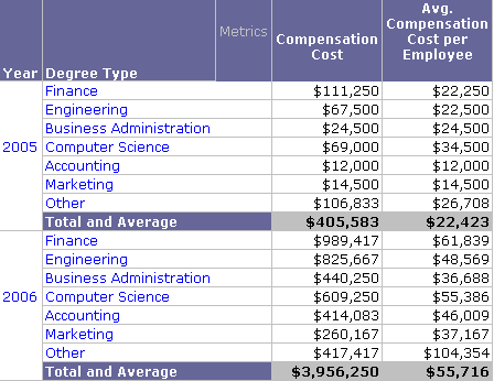 This report compares the distribution of compensation costs across years, based on employee profile.