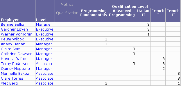 You can use this report to view a list of employees with specified qualifications and skills. You can select the qualification type at run time.
