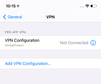 デバイス プロファイルをデバイスに割り当ててから、[設定] > [VPN] でアプリレイヤーの VPN 設定をすべて確認できます。