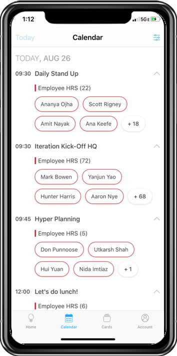 今日、過去、近日中のカレンダー イベントでキーワードと一致したカードにアクセスすることができます。[カレンダー] タブでカードをクリックすると、その内容が表示されます。