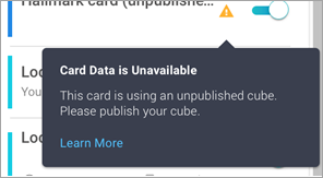 このエラーは、キューブから削除される前に有効化されたカードのキーワードにカーソルを合わせると表示されます。エラーの [更新] ボタンをクリックすると、アドインが更新されます。