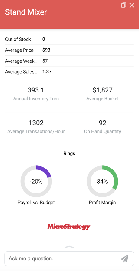 从 MicroStrategy ONE 开始 (2024 年 12 月),机器人将卡片的上下文包含在您的查询中,并使用该上下文来过滤响应。例如,您正在查看一张包含有关特定产品信息的卡片,其中包括哪家商店该产品的销量最多。当你询问机器人该商店中哪些其他产品销量最高时,机器人会使用卡片中的商店信息作为响应的过滤器。卡片的上下文也会影响机器人的建议问题。