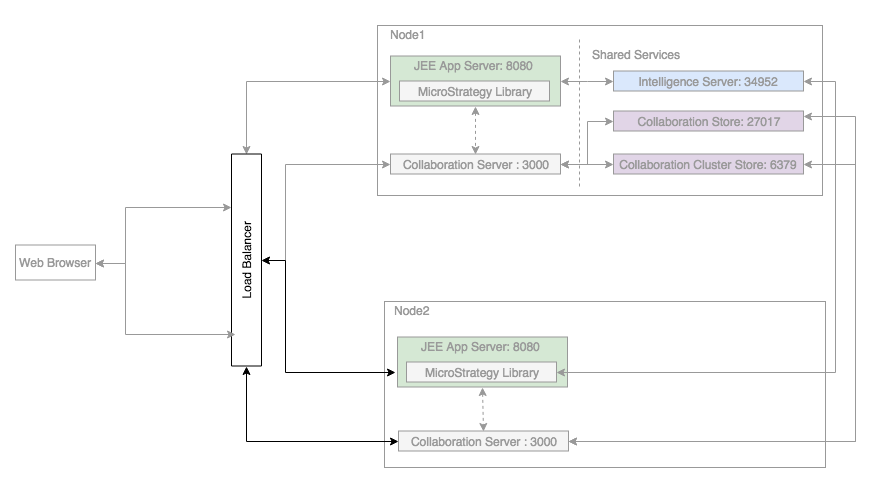 To efficiently increase the number of concurrent users that collaborate in the Strategy Library application, you can cluster the Collaboration Server. The Strategy Collaboration Service can be clustered both vertically and horizontally, depending on your needs.