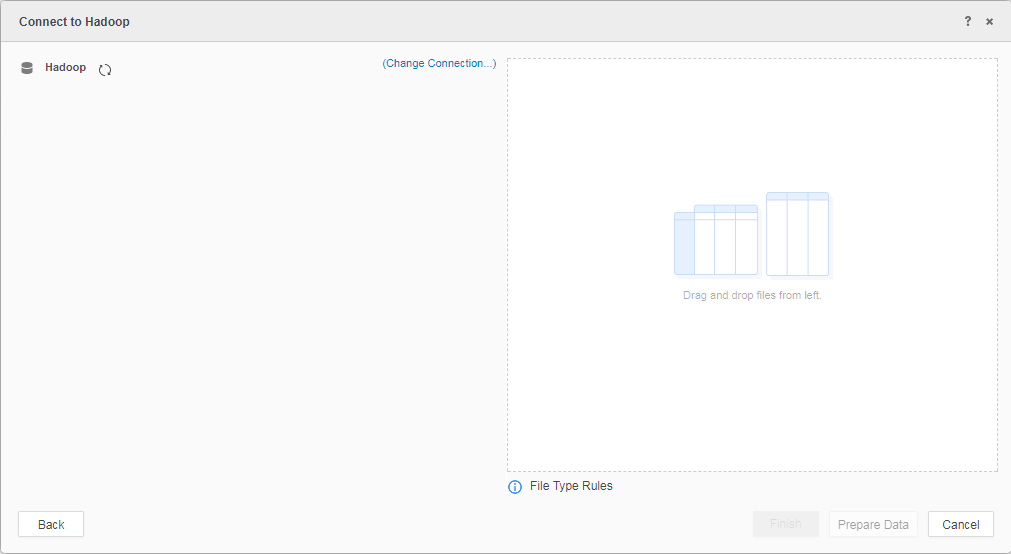 - クリック次。HDFS ファイル ブラウザーで [Hadoop に接続] フォームが表示されます。