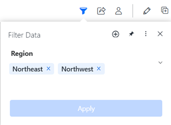 Define the filter condition, such as Region = Northeast or Revenue Greater than 1,000. The definition options vary depending on the type of object you added to the filter. For more details, see Define the condition.