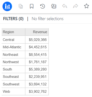 If the report does not contain any filters, the filter summary still displays, as shown below: