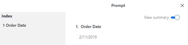 プロンプト ページが表示されます。レポート結果を表示する前に、すべての必須プロンプトに回答する必要があります。