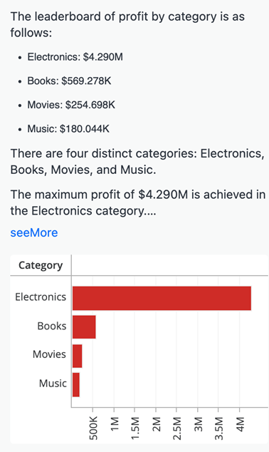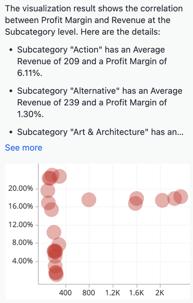 自動回答またはボットを使用するときに適切な質問をすることで、データを最もよく表すビジュアリゼーション タイプを表示できます。