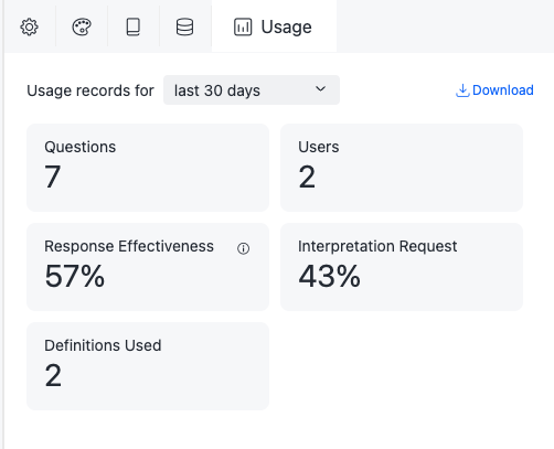 使用量パネルでは、ボット、フィードバック情報、解釈要求などがあります
