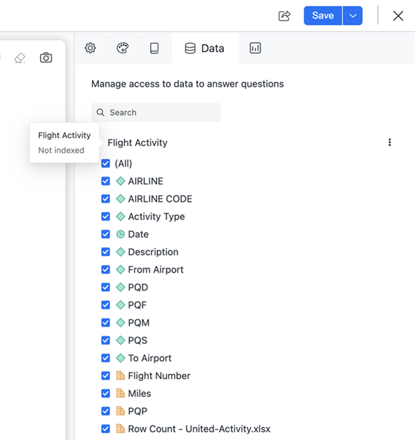 AIインデックス作成 AI インデックスは、データセット内のすべての条件付き文字列タイプのデータ エレメント用に自動的に作成され、専用の Azure AI に安全に保存されます。 アカウントです。インデックスは、Intelligence Server でデータセット (キューブ) が最初にロードまたは公開されたときに生成されます。
