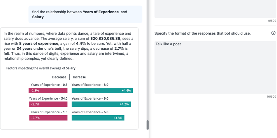 Strategy AI ユーザーからの問い合わせ時にコンテキストとしてデータセットのオブジェクト名とサンプルデータを使用することで、回答の精度を高めます。ユーザーからの質問については不明点がいくつかありますStrategyコンテキストが限定されているため、AI を利用する必要があります。これは、システムがビジネス固有の用語をデータセットのオブジェクトまたは値として自動的に認識するとユーザーが想定している場合に発生します。