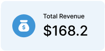 これは、合計収益の Iconic KPI の例です。使用されている画像は、お金の袋です。