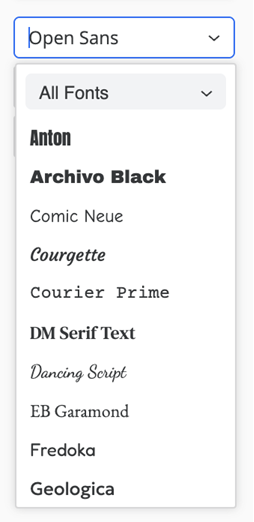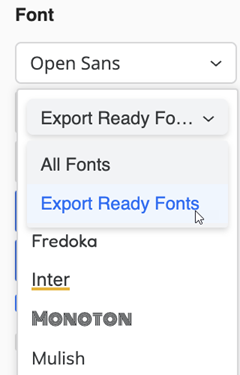 Fontドロップダウンリストをフィルタリングして、システムフォントを除くExport Ready Fontsのみを含めることができます。