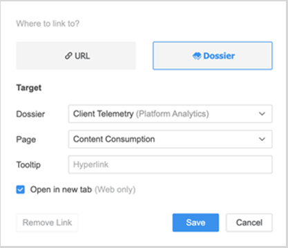À partir de MicroStrategy ONE Mise à jour 11, vous pouvez cliquer sur un champ de texte ou une image vers un autre dossier à dossiers dans différents projets.