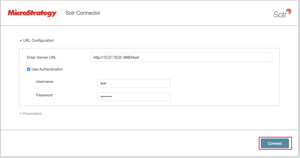- 单击连接。此时,“参数”部分展开。